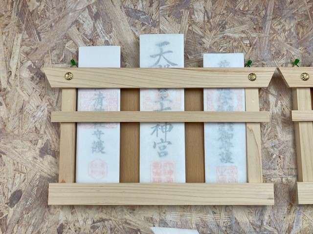 神社のお札と木札。事務所
